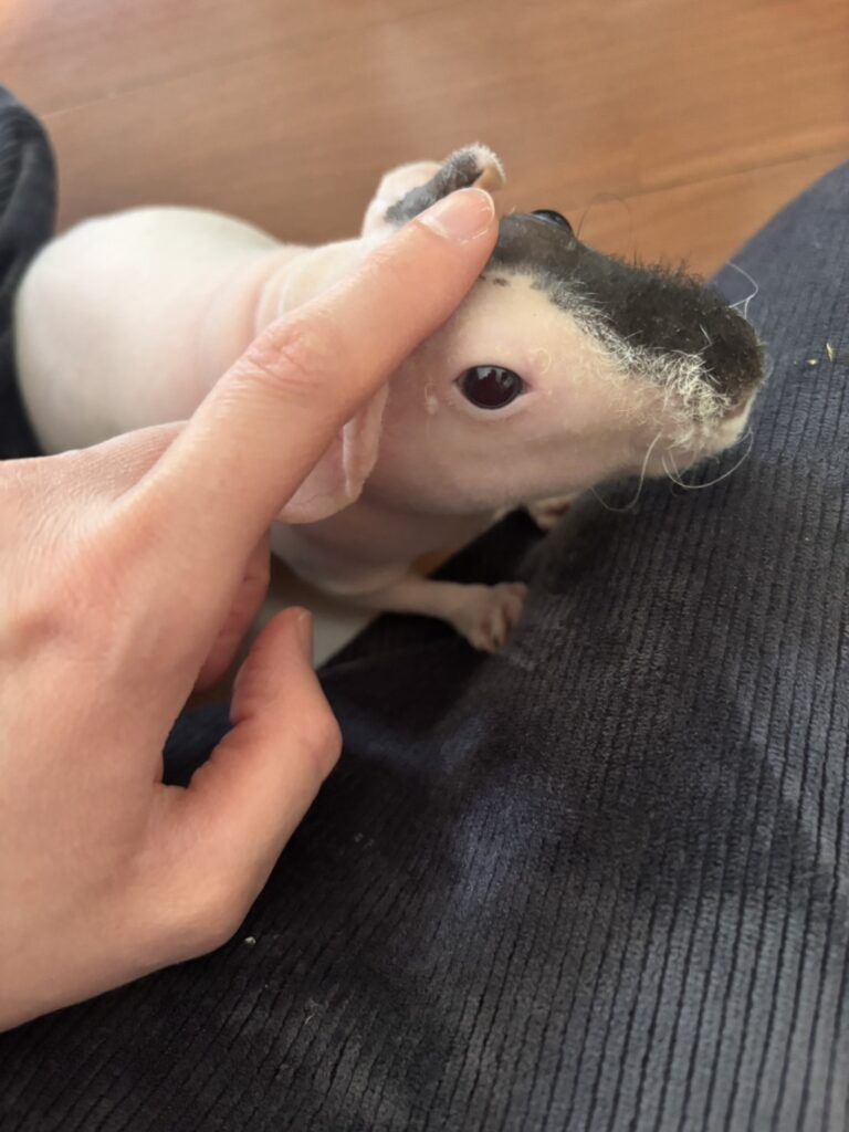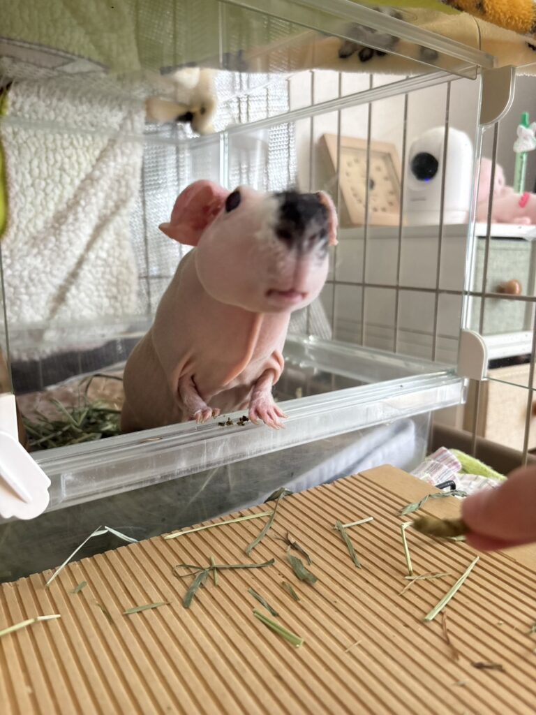 モルモット(スキニーギニアピッグ)は、不思議な見た目に最初は驚くかもしれませんが、一緒に暮らしていくうちに、その子の表情やしぐさにどんどん惹かれていきます。