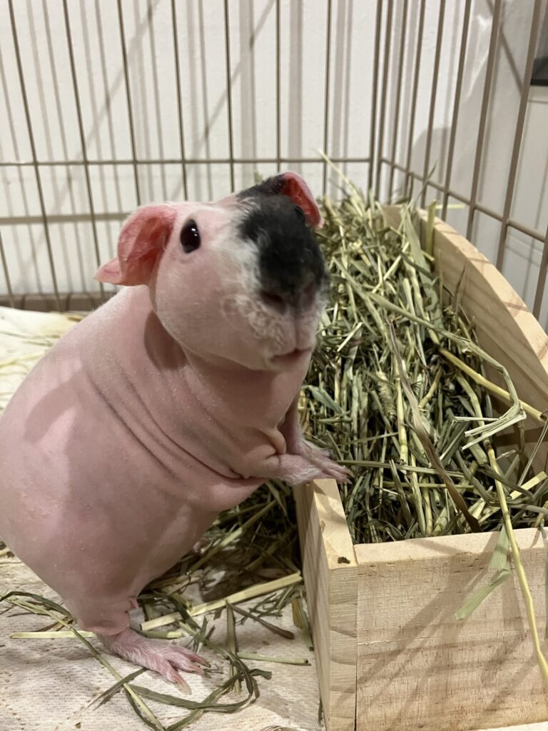 スキニーギニアピッグは毛が少ない分、皮膚がとてもデリケートです。